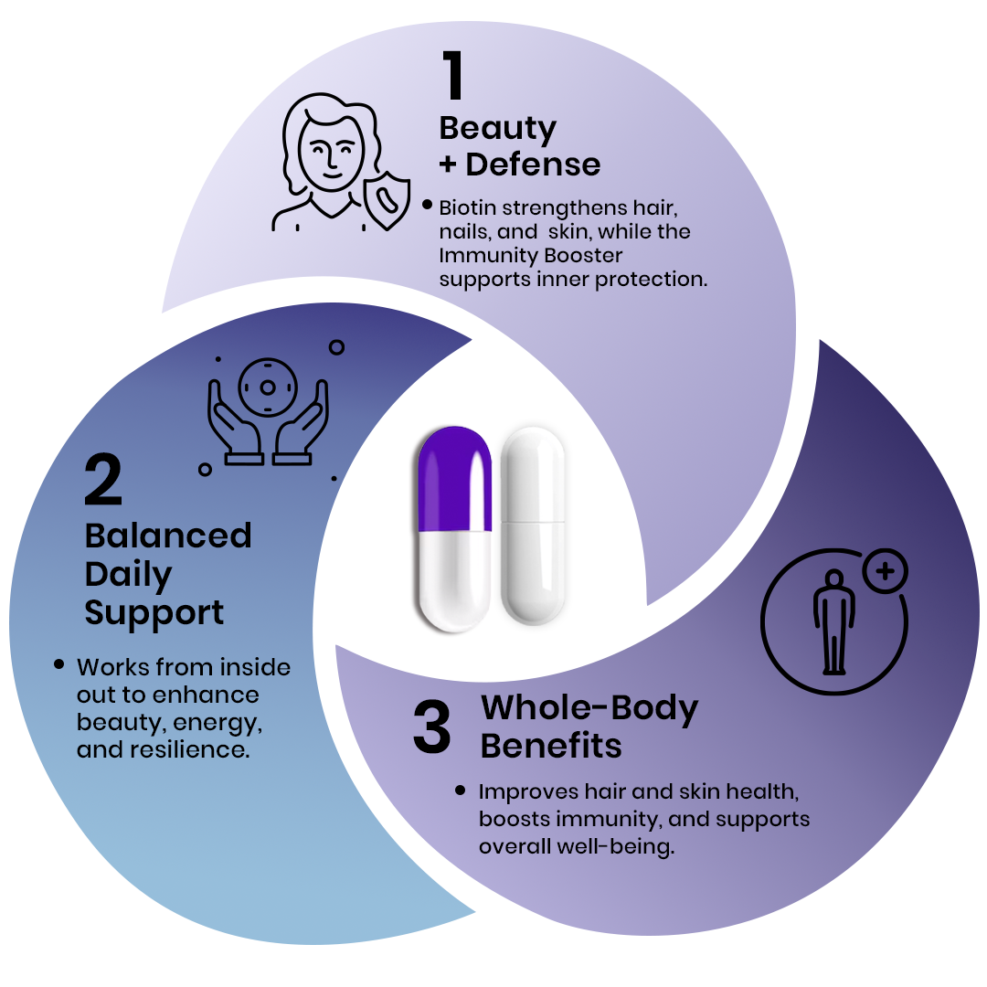 I started taking biotin and an immunity booster together, I feel healthier and my hair has become thicker. It's a great combination for overall well-being.