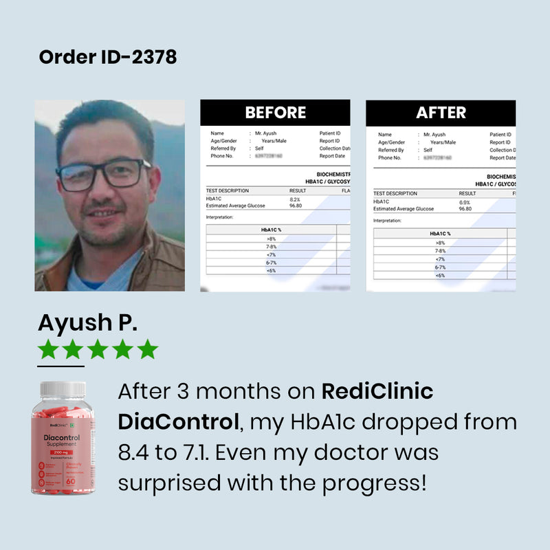 Arjun My doctor noticed a positive change in my reports after I started using Dia Control. It's natural, effective, and easy to take.