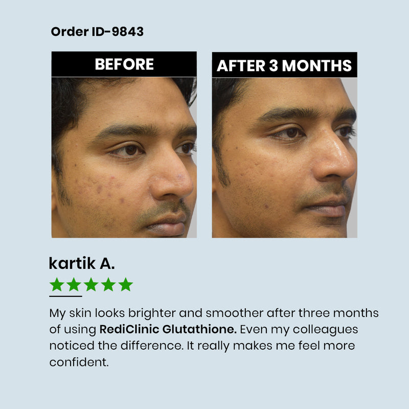 I like this product and it worked very well for me after using this glutathione i skin started glowing, removed dark spots, and cleared oily ness on my face. I found results day by day I founded some difference in my face. Thank you rediclinic for a such good product.