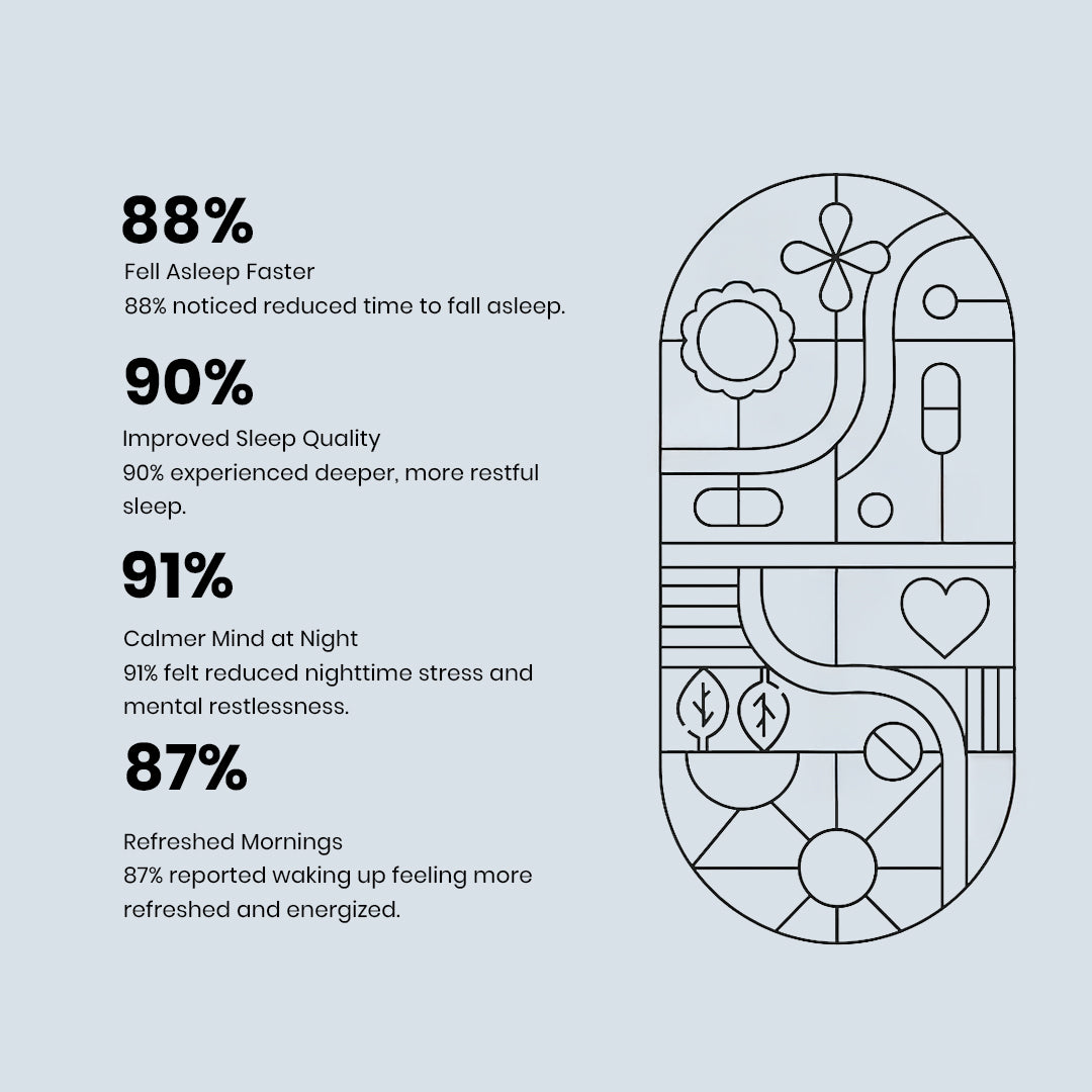 Many users feel relaxation within 30–45 minutes. Regular use may help improve sleep quality and consistency over time.